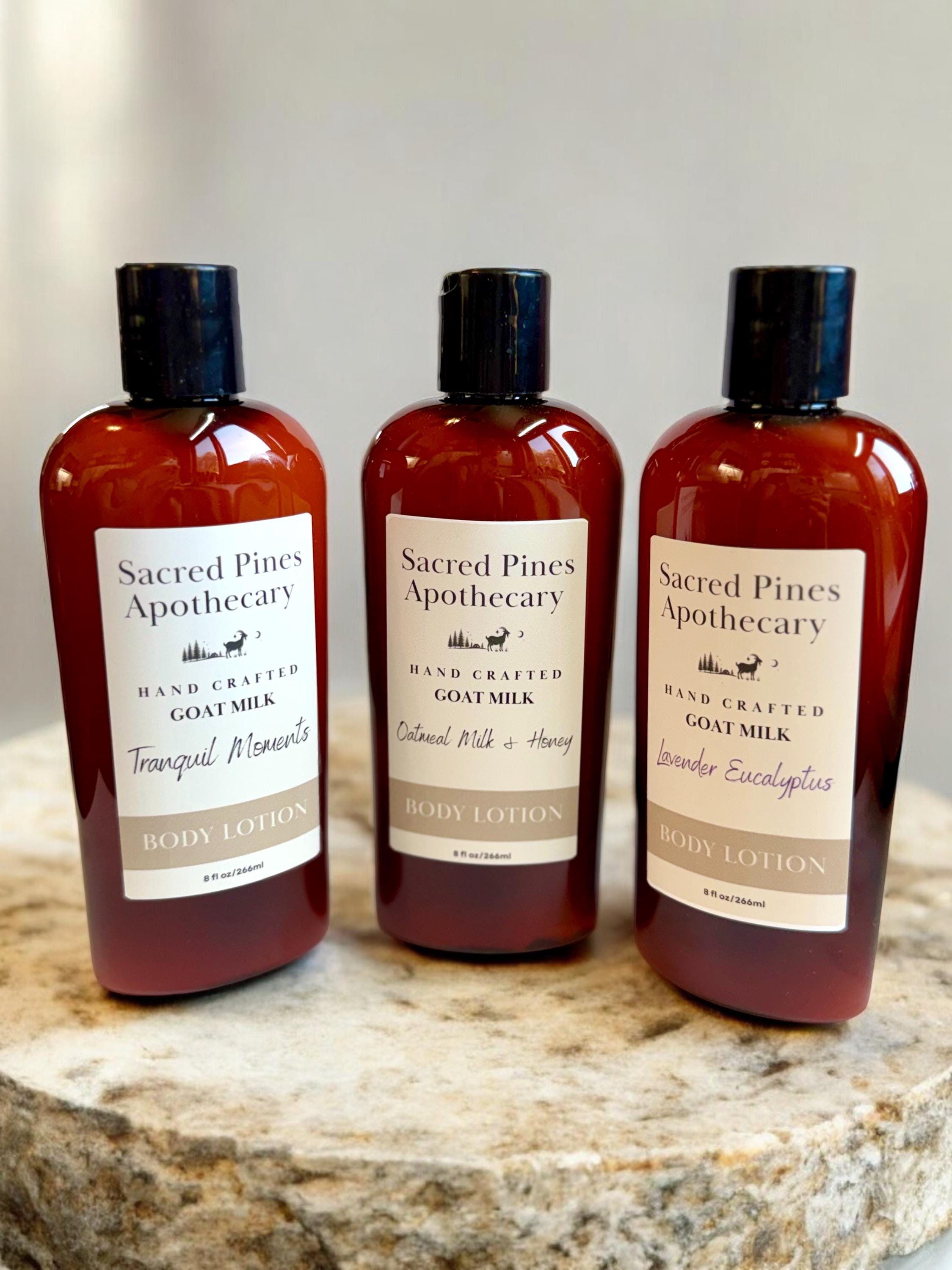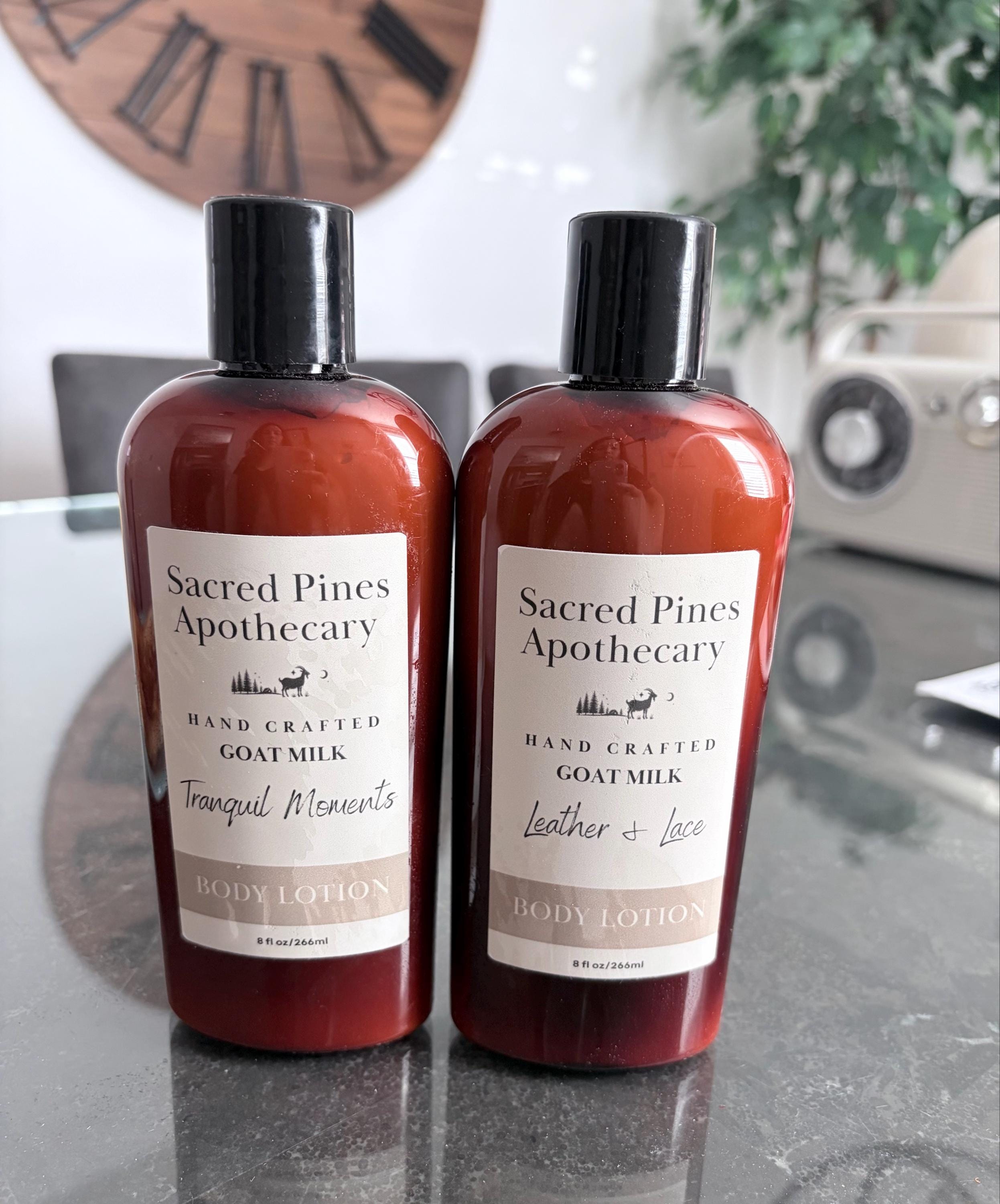 Our lotion is enriched with natural lactic, caproic, and caprylic acids, along with vitamins and minerals from raw goatโs milk, known for its nourishing and moisturizing properties. Treat your skin to deep nourishment with artisan-crafted, farm-fresh luxury.
